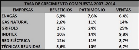 Como puede observar, las tres tramposas pertenecen al infausto monopolio y oligopolio del sector energético nacional. Puede que al terminar el 2015 IBERDROLA se una a este grupo como acreedora de la triple tasa de crecimiento. Por ahora le toca esperar.