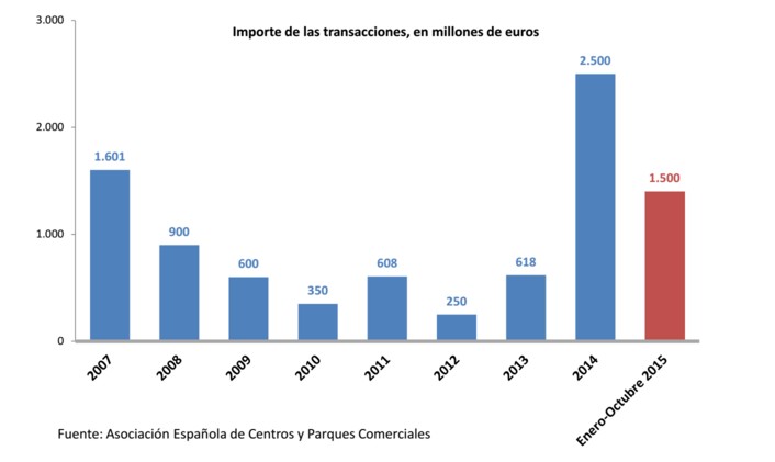 Este año el sector ha continuado generando interés entre los inversores, tanto nacionales como internacionales. Tanto es así que en lo que llevamos de 2015, se han realizado 23 transacciones por valor de casi 1.500 millones de euros. Esta cifra es inferior a los 2.000 millones que se alcanzaron en 2014. "No nos atrevemos a decir que la inversión va a superar a 2014, pero en todo caso, será el segundo mejor año porque ya estamos en niveles de inversión cercanos a los de 2007", ha explicado el presidente de la AECC, Javier Hortelano.