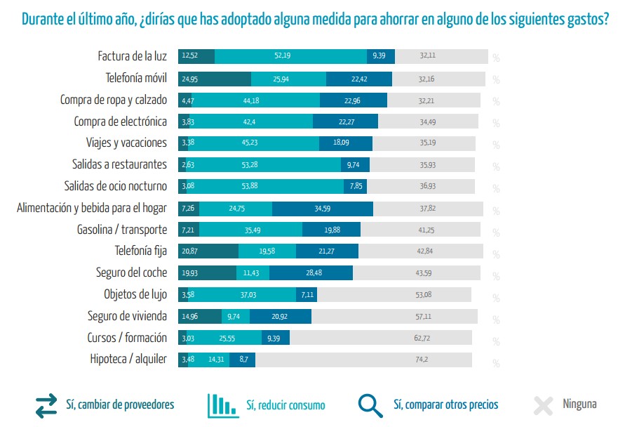 De cara a reducir todos estos gastos recurrentes, los ciudadanos han tomado varias medidas de ahorro, entre las que destaca reducir el consumo, cambiar de proveedor por otro más económico y buscar los mejores precios comparando las diferentes ofertas del mercado.