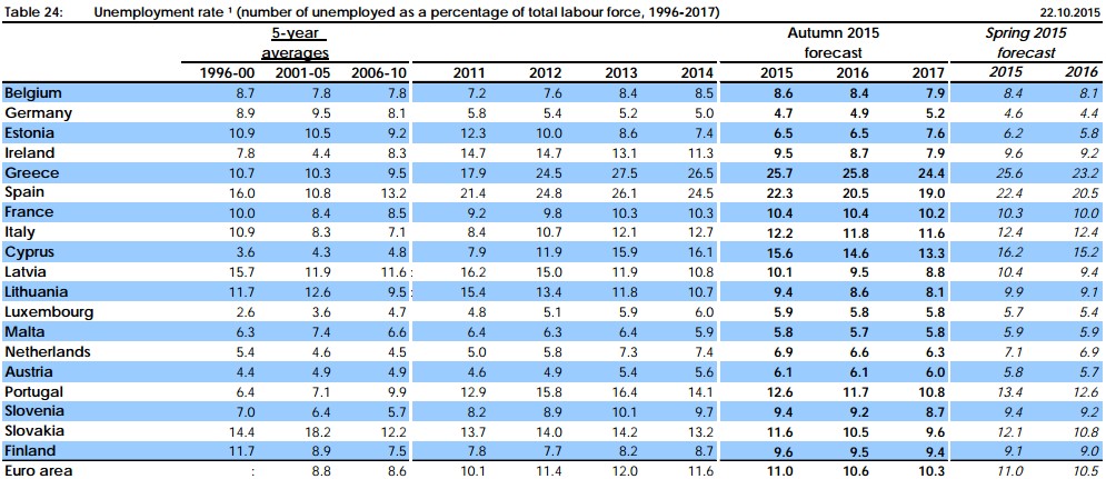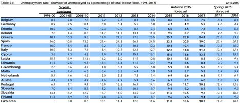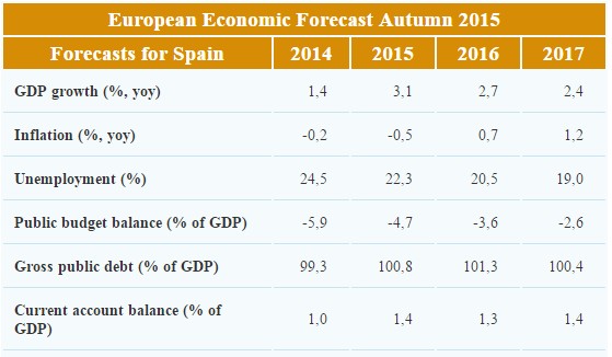 Los indicadores prevén un crecimiento del empleo del 2,8% en España en 2015, el mejor registro de la UE este año, y también espera una mejora del 2,5% para 2016, lo cual permitiría reducir la tasa de paro desde el 24,5% en 2014 al 22,3% en 2015 y al 20,5% en 2016.