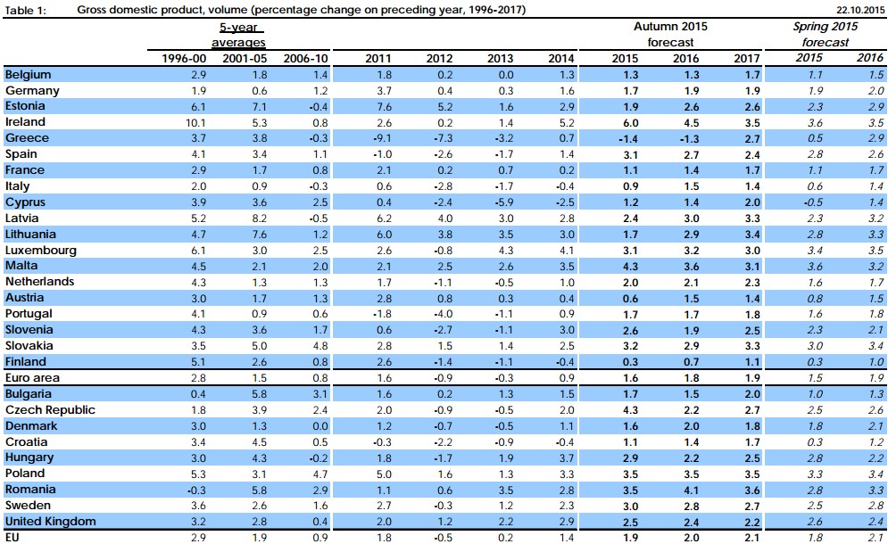 En cuanto al crecimiento, la Comisión avanza una "desaceleración" del PIB durante el tercer trimestre del año, aunque considera que seguirá siendo "robusto", gracias a una creación de empleo "sostenida", una mejora de las condiciones de financiación, un aumento de la confianza y a un nivel bajo de los precios del petróleo.