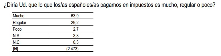 Y ello, a pesar de que el 63,9% de los españoles dice que pagamos "muchos" impuestos... A la altura e incluso más que otros países avanzados de Europa (54%).