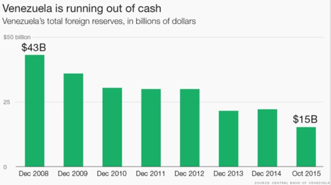 ¿Cuál es el problema? Las reservas de divisa extranjera que posee Venezuela en estos momentos están en mínimos históricos de los últimos doce años, habiendo pasado desde los 43.000 millones de dólares hasta 15.000 millones en apenas siete años, según los datos oficiales del Banco Central de Venezuela.