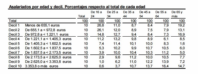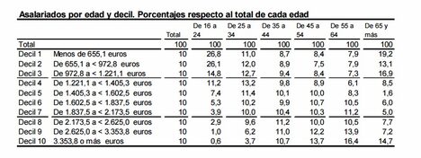 ¿Qué conclusiones pueden sacarse? Bastante previsibles. Los sueldos medios crecen a más edad, más tiempo de permanencia en la empresa, más formación y más tamaño de la empresa. Por ejemplo, el 16% de las personas con más de 55 años tiene unos ingresos superiores a los 3.358 euros al mes, mientras que sólo el 3,7 de los que tienen entre 25 y 34 años alcanza ese nivel.