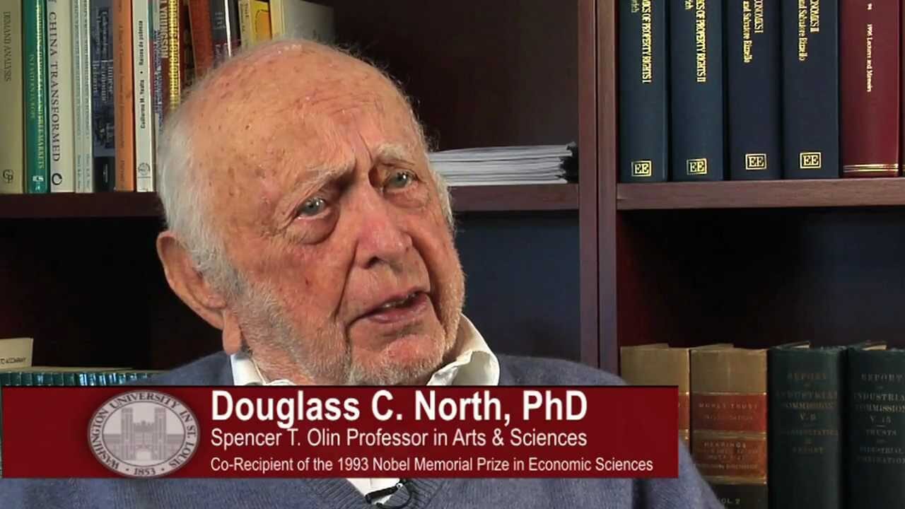 La Universidad Washington de San Luis ha publicado un obituario de Douglass C. North en el que se sintetizan seis décadas de labor académica. Esto ya sería todo un logro, como lo es haber terminado una carrera prolífica a los 95 años. Sus intereses siempre fueron amplios, como lo demuestra que se graduase en tres carreras: Ciencia Política, Filosofía y Economía. En esta última disciplina alcanzó el máximo reconocimiento, que es el que otorga el Banco de Suecia y lleva el apellido de Alfred Nobel.