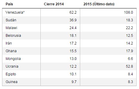 Venezuela es el país con la mayor inflación del mundo, superior al 100%, según los últimos datos disponibles del Banco Mundial, si bien las mediciones alternativas sitúan la pérdida real de poder adquisitivo muy por encima de ese umbral.