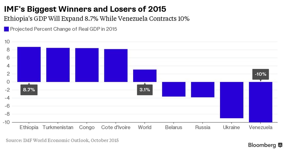 La economía venezolana afronta, además, la mayor recesión del mundo, ya que su PIB se hundirá un 10% en 2015 y otro 6% adicional en 2016, según las últimas previsiones del Fondo Monetario Internacional (FMI).