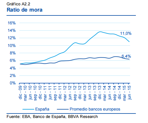 En segundo lugar, la ratio de mora ha empezado a caer: tocó techo en 2013, con un 14%, y hoy se acerca al 10%.
