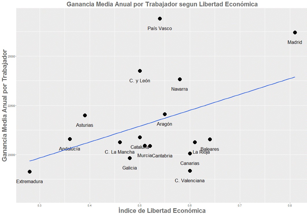Los salarios tampoco son una excepción. Las comunidades autónomas tienen amplias competencias en lo que a presión fiscal sobre las rentas del trabajo se refiere y eso se deja notar en los lugares donde se instala el talento y los profesionales con alto valor añadido. Las regiones más libres en lo económico son también aquellas donde se pagan los mayores salarios.