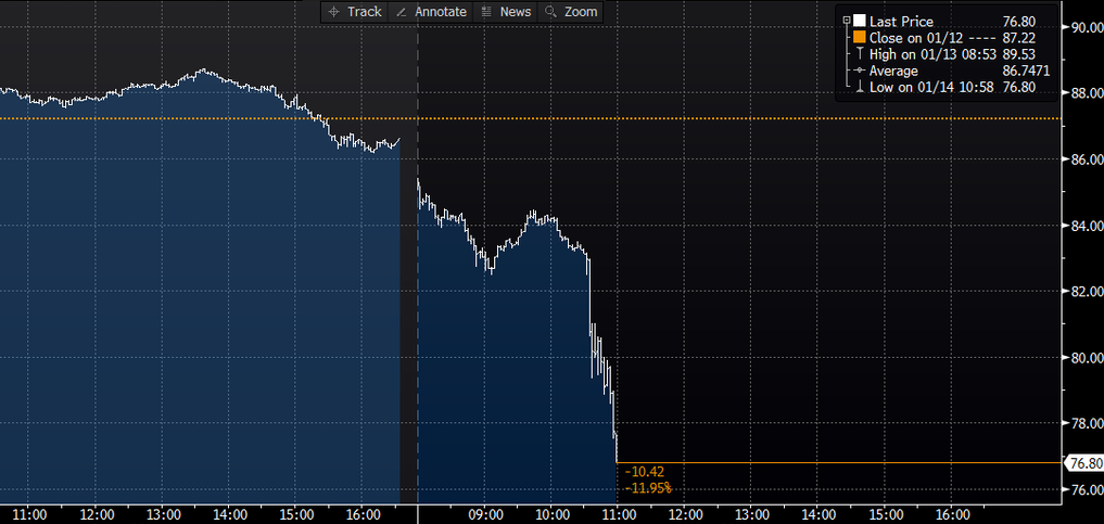 Los registros tuvieron lugar el pasado 7 de enero, pero han saltado a la luz una semana después. Una vez la información ha entrado en circulación, la reacción en los mercados ha sido casi inmediata, como muestra la siguiente gráfica de Bloomberg.