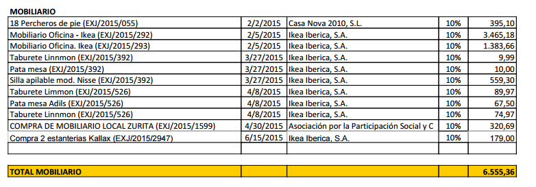 Así, si nos fijamos en los gastos en mobiliario que ha realizado Podemos, vemos que buena parte han sido compras a IKEA. De hecho, de los 6.555 euros desembolsados por este concepto, casi 5.700 han ido a parar a la multinacional sueca.