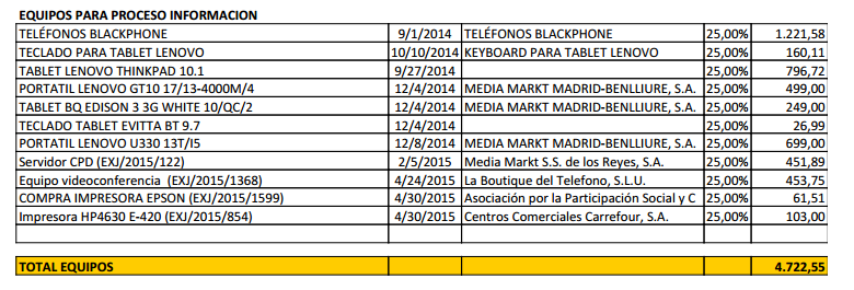 Algo similar ocurre con las compras informáticas de Podemos. Esta vez la gran empresa que sale beneficiada es Media Markt, que concentra buena parte de los 4.720 euros que el partido de Pablo Iglesias ha dedicado a estas adquisiciones: