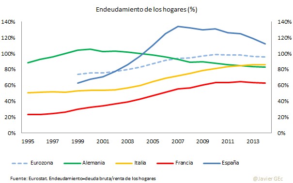 Por el lado de los pasivos, el proceso de desapalancamiento de los hogares continúa, acercándose cada vez más al promedio de la eurozona y reduciendo los insostenibles niveles de deuda anteriores al estallido de la burbuja inmobiliaria.
