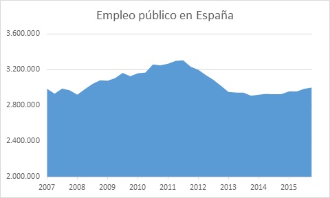 Y tercero, el número de empleados públicos ha superado la marca de tres millones de personas después de aumentar en casi 100.000 durante los últimos dos años. De este modo, las Administraciones Públicas españolas vuelven a ocupar a más personal que antes de que arrancara la crisis en 2008, poniendo en evidencia que la tan necesaria como poco practicada austeridad estatal ha muerto. Tan irresponsable prodigalidad en el gasto público constituye un enorme riesgo para nuestro futuro: el déficit presupuestario cerrará 2015 muy alejado de nuestro compromiso con Bruselas, de modo que requeriremos de muchos más recortes durante los próximos ejercicios. Y uno de esos recortes debería concentrarse sobre el gasto en personal del Estado: abrir de nuevo la mano a contrataciones generalizadas no avanza en la dirección adecuada, sino en la opuesta.