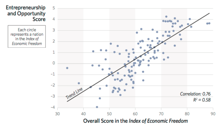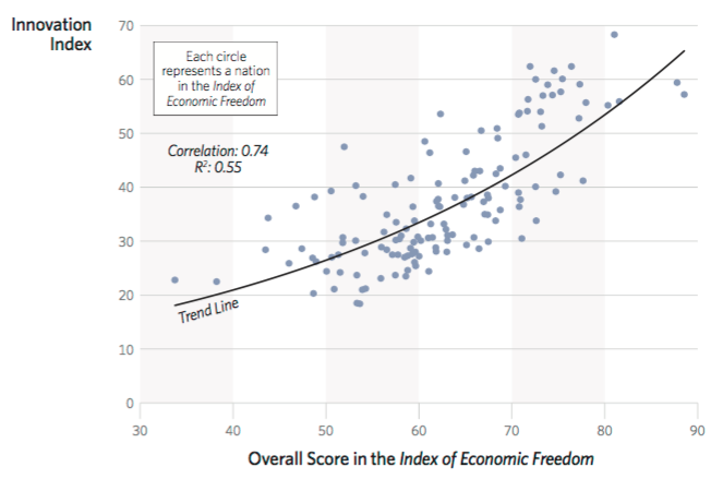 Los índices de innovación guardan una estrecha relación con el grado de libertad económica de los distintos países.