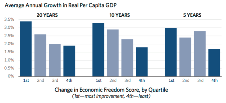 A corto, medio y sobre todo largo plazo, son los países más abiertos al paradigma del laissez faire los que más crecen.