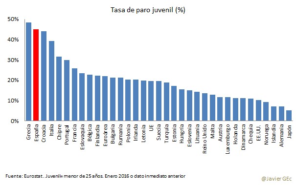 De todas formas, aunque el desempleo de los más jóvenes se reduzca, el mercado laboral español no abandona los primeros puestos en cuanto a paro juvenil. En esta categoría obtiene el dudoso honor de sólo ser superados por Grecia.