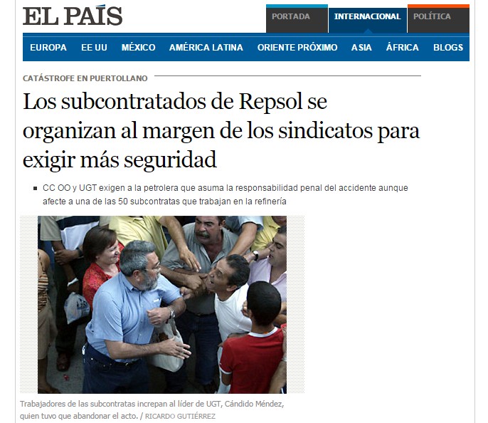 En verano de 2003 la tragedia de la refinería de Repsol en Puertollano (que se saldó con 11 muertos) llevó a momentos de tensión en las manifestaciones. Cándido Méndez acudió a una de ellas, donde se reclamaban más medidas de seguridad a Repsol. Uno de los manifestantes, apodado "El Puñales" se encargó violentamente con Cándido Méndez. El País recogió la instantánea