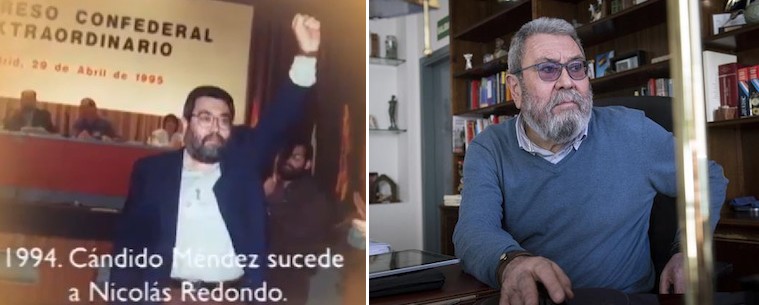 Cándido Méndez en 1994, cuando se convirtió en secretario general de UGT. A la derecha, Cándido Méndez en 2016, tras 22 años al frente del sindicato
