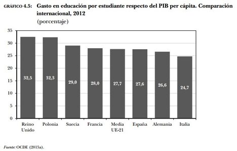 Eso sí, tal y como explica el informe "cuando se considera el gasto por estudiante y se relativiza en función del PIB por habitante (es decir, se mide el esfuerzo como la parte de la renta media de una persona que se dedica a formar un alumno) el esfuerzo del gasto en educación español se sitúa alrededor de la media europea". Vamos, que dado nuestro nivel de riqueza nos gastamos más o menos lo que nos toca.