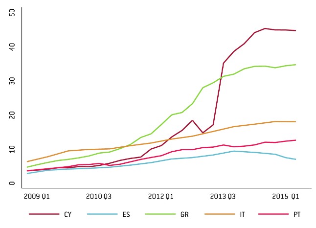 Además, una gran singularidad del rescate chipriota ha sido la exigencia de una recapitalización privada de su quebrado sistema financiero. Esto en su día generó gran controversia por la necesidad de convertir en acciones parte de los depósitos no asegurados (aquellos con importe superior a 100.000€), pero a continuación veremos cómo los resultados están siendo positivos. El país regresó a los mercados de capitales internacionales el pasado octubre (2015).