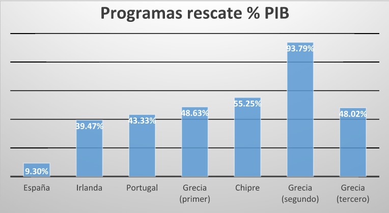 Chipre, por su parte, recibe una cantidad que en su día fue tildada como totalmente insuficiente para las necesidades que afrontaba la pequeña isla. Los fondos de la troika apenas daban para recapitalizar una parte de su quebrado sistema bancario. Sin embargo, al igual que en el caso español y en clara contraposición al caso griego, la utilización de fondos ligados al rescate fue menor a la cuantía pactada. En concreto, utilizó menos del 70%: de los 9.000 millones de euros acordados en un primer momento, sólo se han utilizado 6.300 millones.