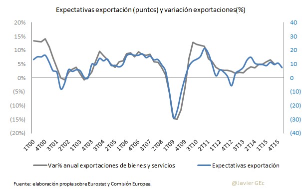 Se trata de un indicador relevante, puesto que las exportaciones han sido el catalizador del crecimiento europeo durante los dos últimos años, de modo que su deterioro podría suponer un significativo freno al PIB de la zona euro en 2016, tal y como ahora estima el BCE.