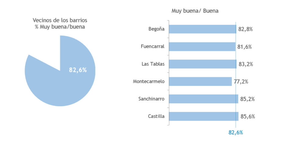 En las zonas afectadas más directamente por esta iniciativa, la opinión de los ciudadanos sobre la actuación urbanística que proponen BBVA y San José es aún más favorable que la registrada entre el resto de madrileños. Así, frente al 78,4% registrado en toda la Villa y Corte, el respaldo es del 82,6% cuando analizamos solamente la opinión de los residentes de barrios como Begoña, Fuencarral, Las Tablas, Montecarmelo, Sanchinarro y Castilla.