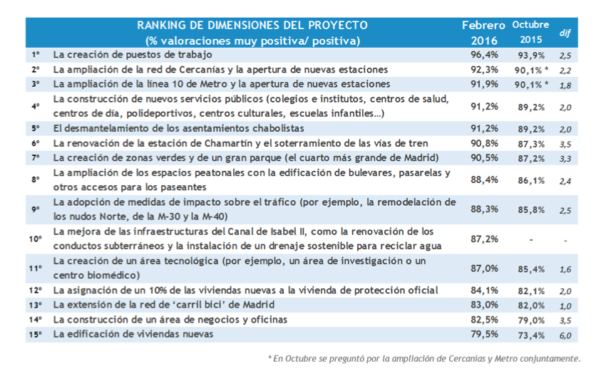 Sin embargo, la actitud del gobierno de Ahora Madrid choca con el amplio respaldo que cosecha esta operación urbanística. De hecho, según apunta la segunda encuesta de la consultora MyWord para el proyecto Distrito Castellana Norte, el respaldo a la iniciativa ya llega al 78,4% de los madrileños. En paralelo, el rechazo a la Operación Chamartín se ha desplomado: si ya era bajo en octubre de 2015 (7,5%), ahora apenas alcanza el 3,9%.