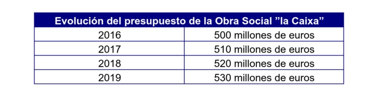 En 2016, la Obra Social la Caixa cuenta con un presupuesto de 500 millones de euros, la misma cantidad que en los ocho ejercicios precedentes.