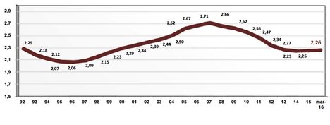 Con todo esto, el panorama es complicado desde un punto de vista financiero. Por un lado, el número de pensionistas crece. La pensión media también lo hace. Por ejemplo, de diciembre de 2012 a marzo de 2016, la prestación por jubilación media ha pasado de 956 a 1.037 euros, un 8,5% de incremento en poco más de tres años. Esto se debe a que los nuevos pensionistas que se jubilan tienen carreras profesionales más largas y bases más elevadas que los que dejan el sistema cuando fallecen. Mientras tanto, salarios y bases medias de cotización están estancados desde 2012. Por lo tanto, lo que tenemos es que trabajadores con unos ingresos estables tienen que pagar las prestaciones de unos jubilados con más derechos.