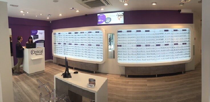 - Las tiendas: la superficie de los establecimientos de Optical Discount será de unos 80 metros cuadrados, más pequeños de los de Alain Afflelou, y sus ubicaciones serán de "proximidad" y no en zonas premium, lo que reduce el precio de los alquileres. El coste de las obras para adaptar el local a las exigencias marca es la mitad que el de su marca insignia y los franquiciados obtienen menos ingresos.