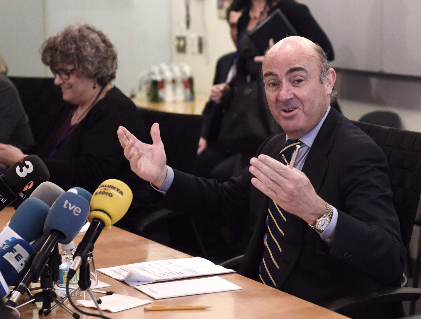 De Guindos comentó en una rueda de prensa, en la asamblea de primavera del Fondo Monetario Internacional (FMI) y el Banco Mundial (BM), que estas nuevas cifras responden a "la desaceleración global", al compararlas con las del cuadro macroeconómico previo del Gobierno español, que contaba con un crecimiento del PIB del 3% para este año y del 2,9% para 2017.
