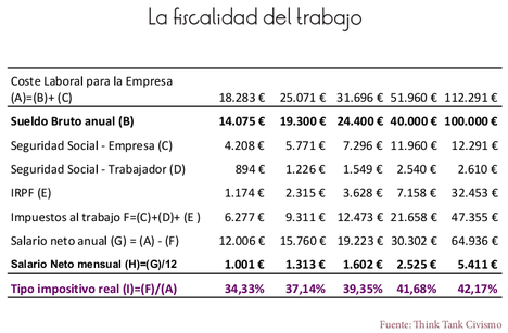 Cálculo de fiscalidad al trabajo por tramos de salarios | Think Tank Civismo