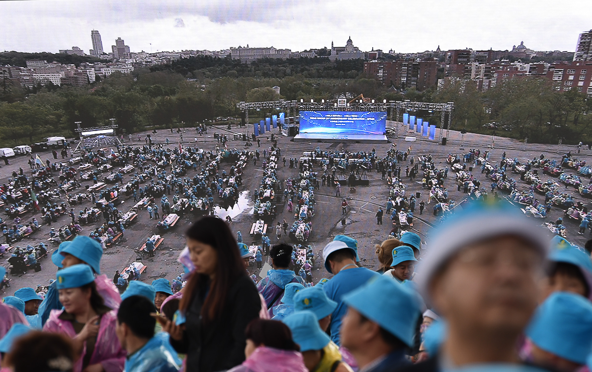 Miles de chinos trabajadores de Tiens se dieron cita en la Casa de Campo en Madrid.