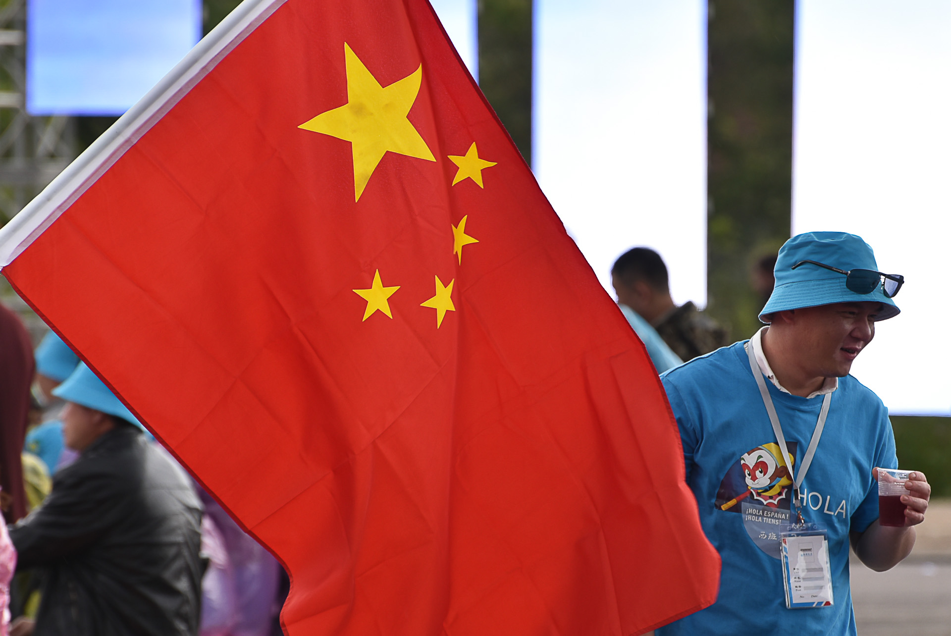 Una enorme bandera de China preside una de las mesas de los empleados de Tiens.