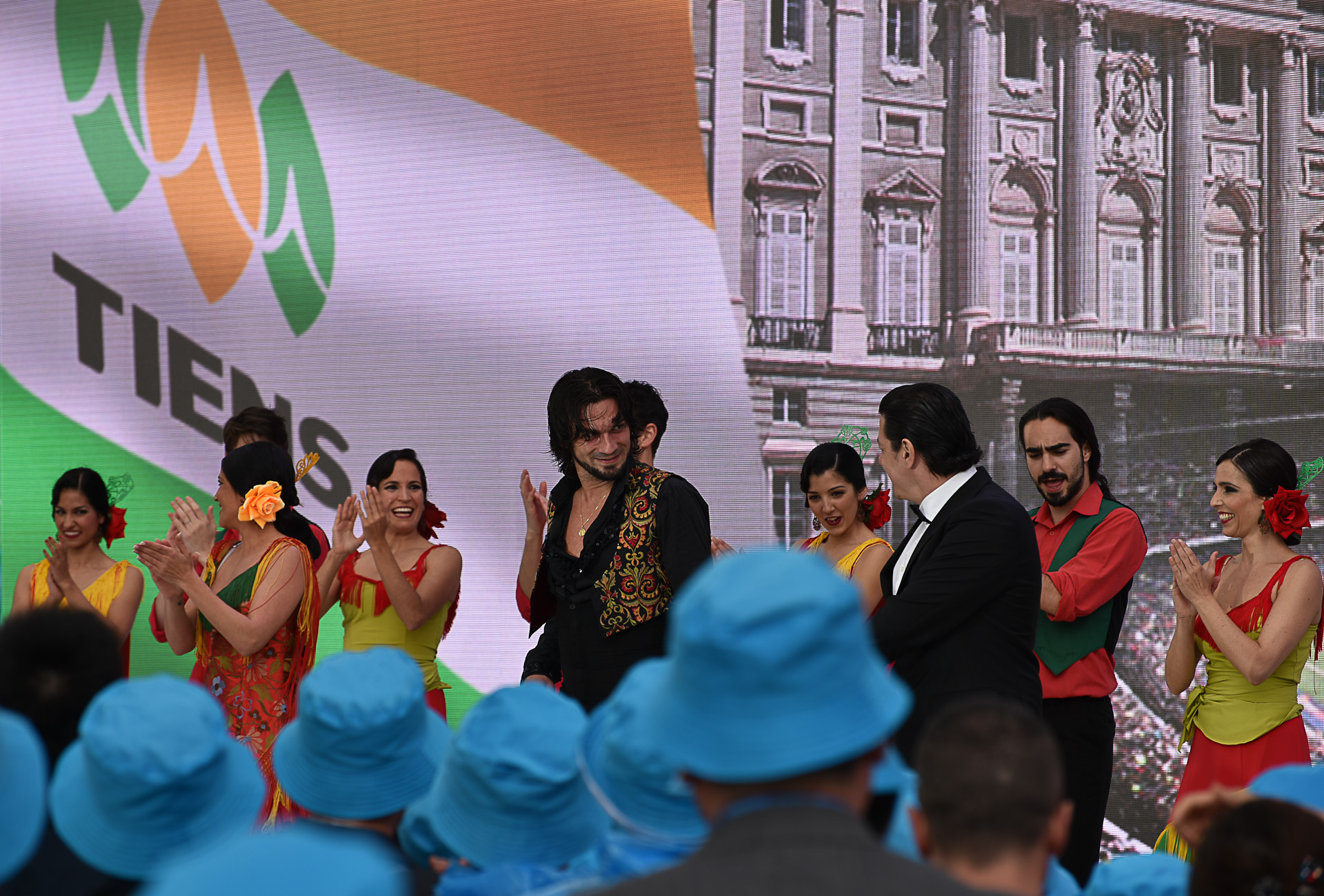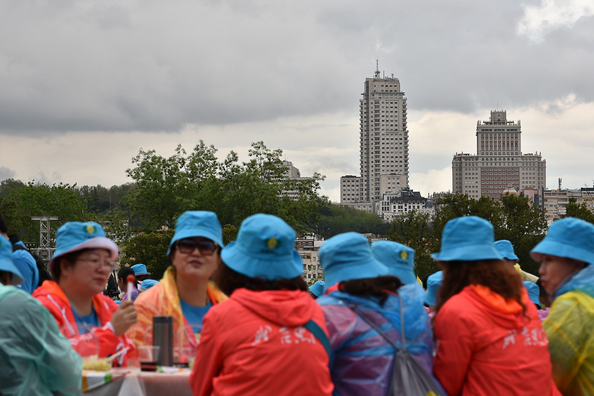 2500 chinos y de otras nacionalidades han pasado tres noches en Madrid y dos en Barcelona, con unas cifras de vértigo: 20 vuelos, 70 autobuses, cuatro trenes AVE y 1.650 habitaciones de hotel. Este viernes los mejores empleados de la empresa Tians y a pesar de la lluvia, disfrutaron de una gran paellada, con sangría y flamenco incluido en un fiesta al aire libre en la Casa de Campo de Madrid.