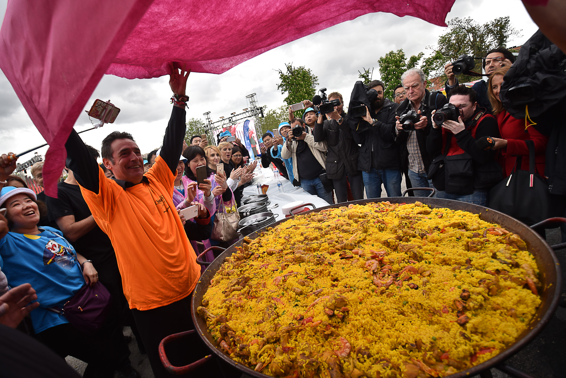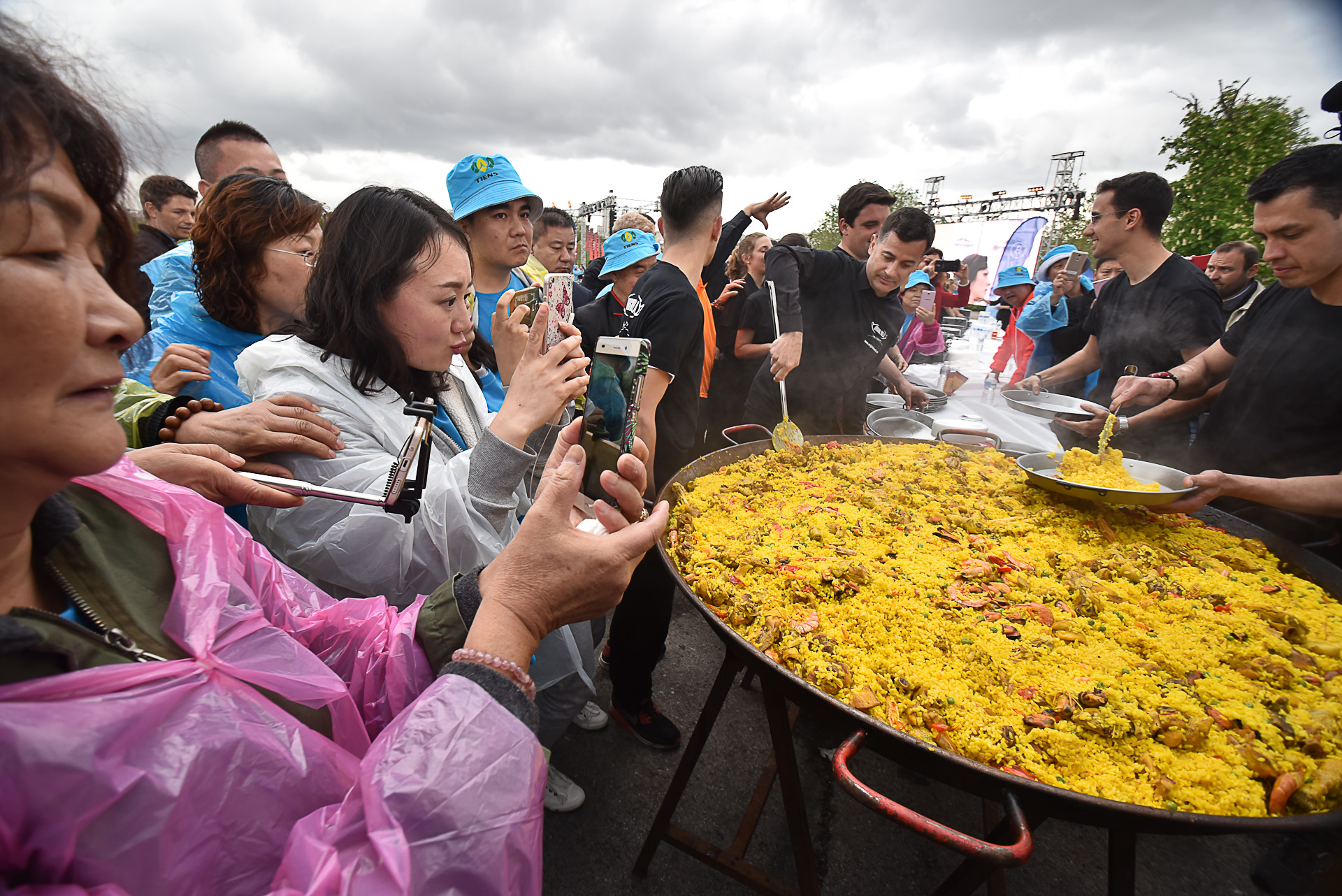 Muchos chinos no perdieron el tiempo para realizar fotografías con su teléfono móvil de la apetecible paella.