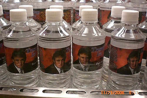 Las botellas de agua de Donald Trump estaban disponibles en el casino, también de su propiedad, pero no tuvieron mucho éxito. Hoy en día se pueden encontrar algunas en Ebay.