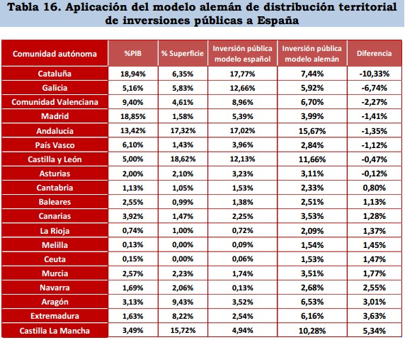 Como vemos, el Gobierno federal alemán aplica los criterios lógicos de inversión en sus regiones, sin hacer una equivalencia PIB-Infraestructuras que puede no tener mucho sentido (quizás hay länder muy ricos con poca extensión y que no necesitan esa inversión). De hecho, si replicásemos el nivel de inversiones de Alemania, teniendo en cuenta extensión, población y PIB tal y como lo hace el Gobierno germano, Cataluña perdería 10 puntos de la inversión en infraestructuras de la última década.