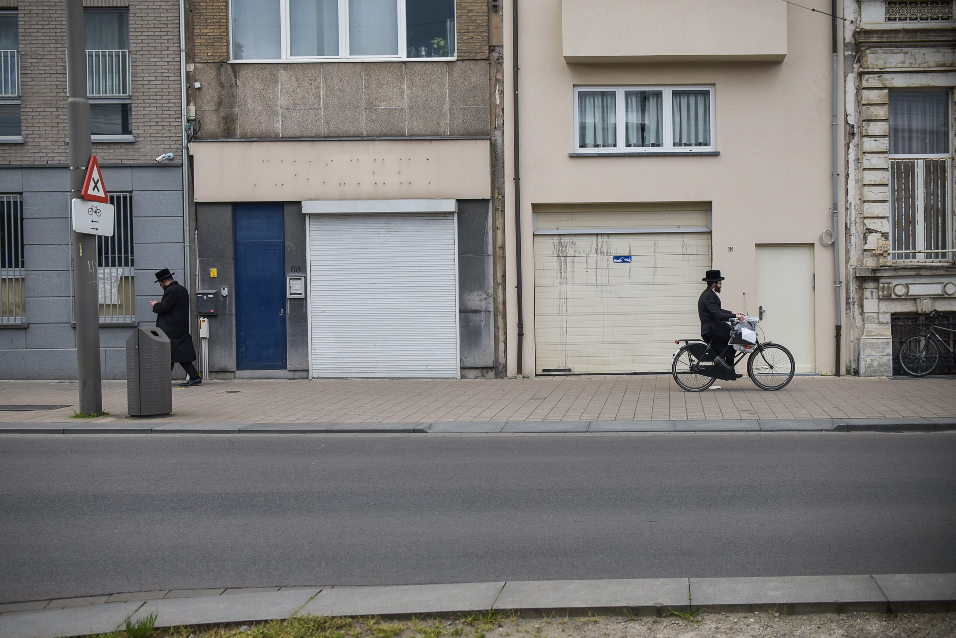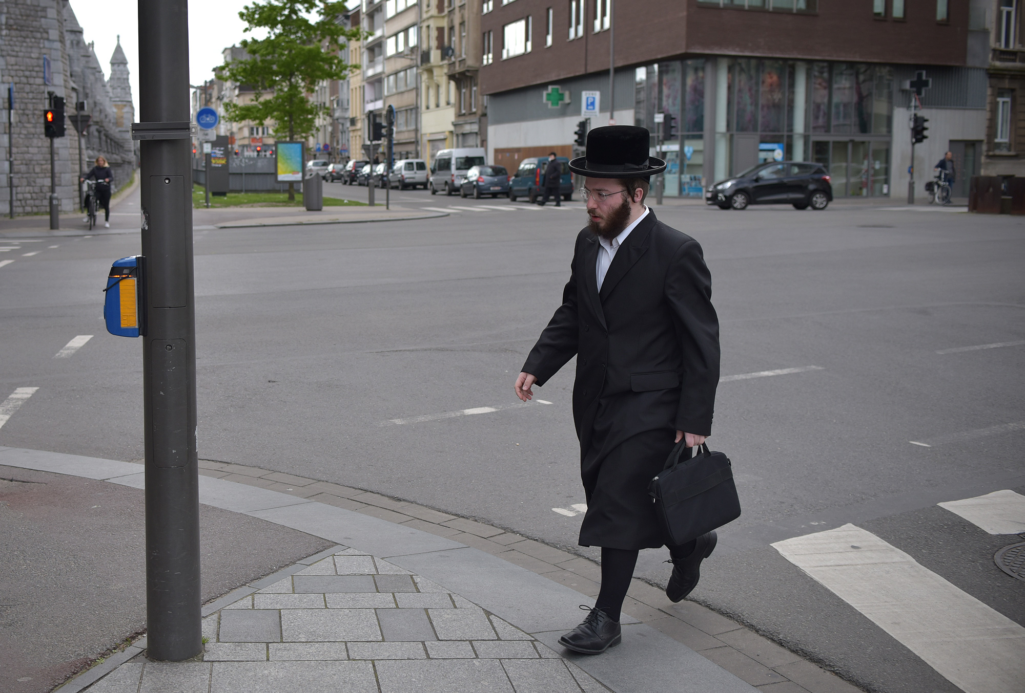 Un judío ortodoxo camina por una de las calles del barrio judío de Amberes.