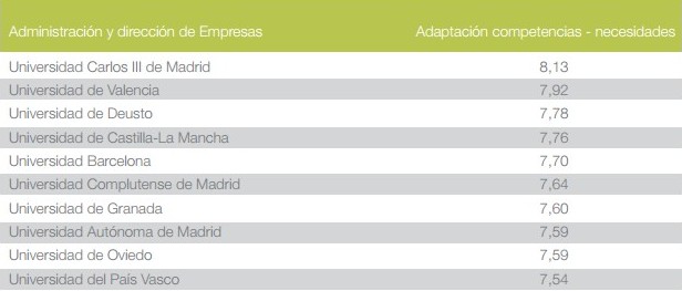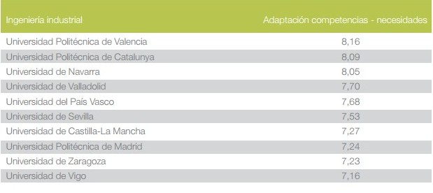 Por otro lado, las universidades más valoradas por las empresas según la adaptación de las competencias a sus necesidades han sido las siguientes: