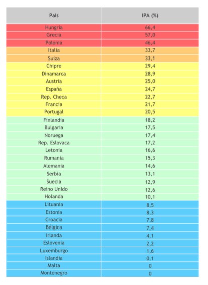 ¿Y por países? ¿Cómo se distribuye el voto populista y autoritario? Según Timbro y Civismo, los tres países más afectados por este fenómeno son Hungría, Grecia y Polonia. Suiza e Italia completan el 'top 5' y España se cuela en el 'top 10', justo por delante de Francia. En el extremo opuesto figuran países como Irlanda, donde la popularidad electoral de estos partidos radicales se ubica en niveles del 4,1%.