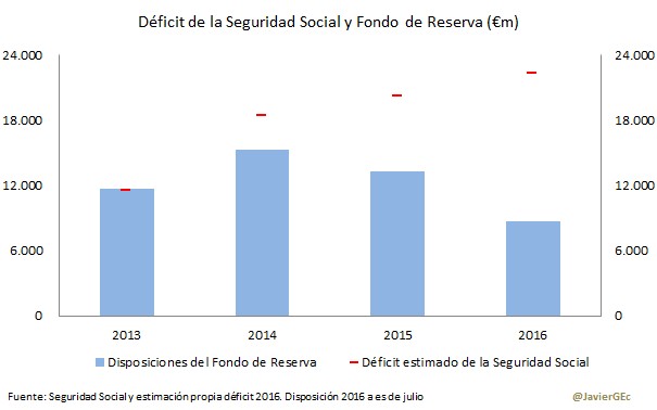 En definitiva, gran parte de la atención se concentra en la progresiva redución del Fondo de Reserva. Sin embargo, lo importante es la diferencia entre los costes e ingresos que está provocando un déficit insostenible y no si el déficit se financia haciendo uso de la hucha de las pensiones o a través de más deuda pública.