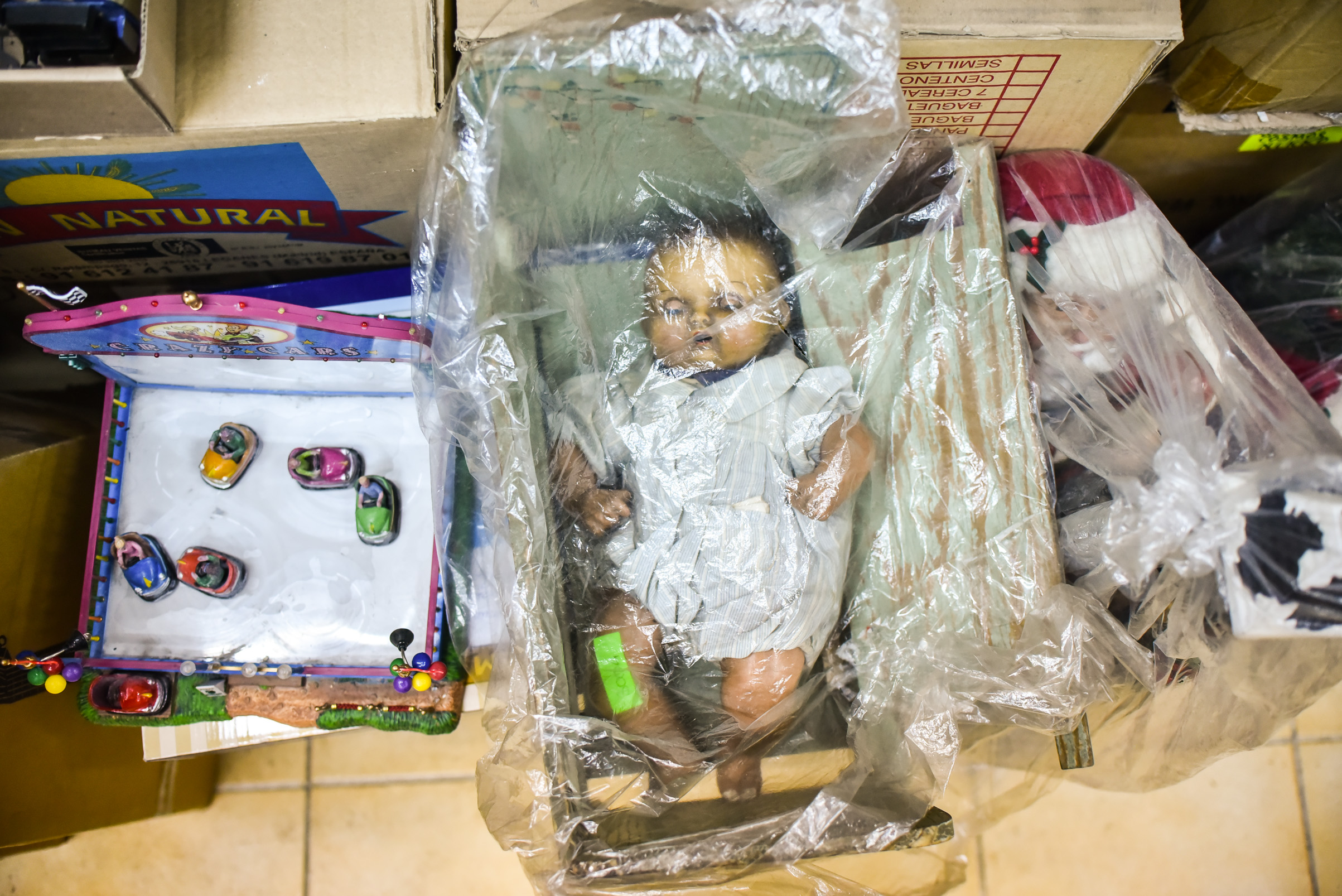 Las cajas de cartón son como pequeños ataúdes para los juguetes que pronto recuperarán su valor y sus partes.
