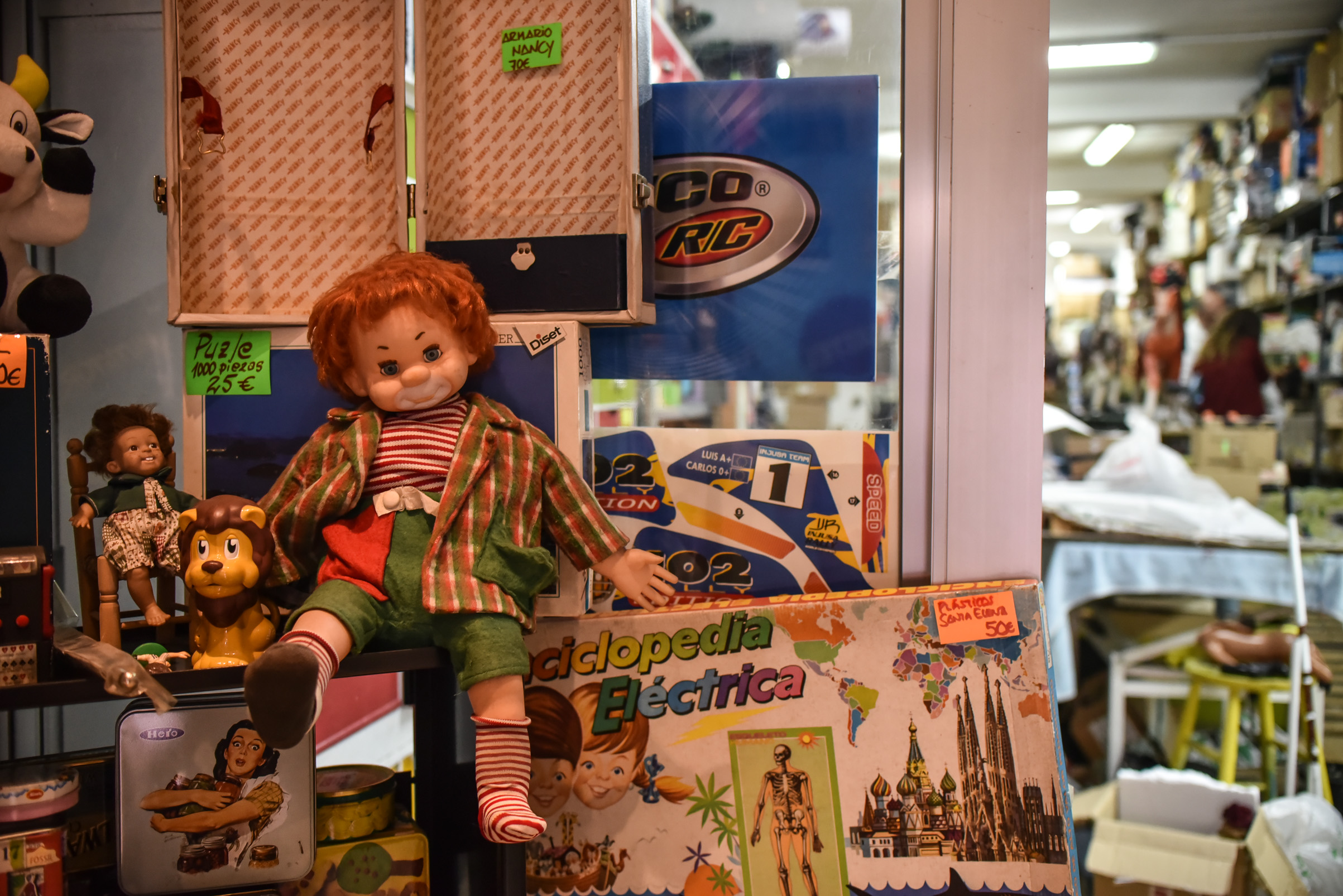 No sólo muñecos de hojalata o madera pueblan este establecimiento, también otro tipo de divertimentos mecánicos.