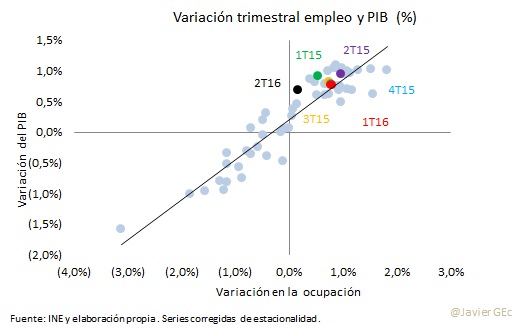De la Encuesta de la Población Activa -en adelante EPA- del segundo trimestre de 2016 podrían destacarse dos elementos, uno coyuntural –el bajo crecimiento del empleo- y otro estructural –la dualidad del mercado laboral.