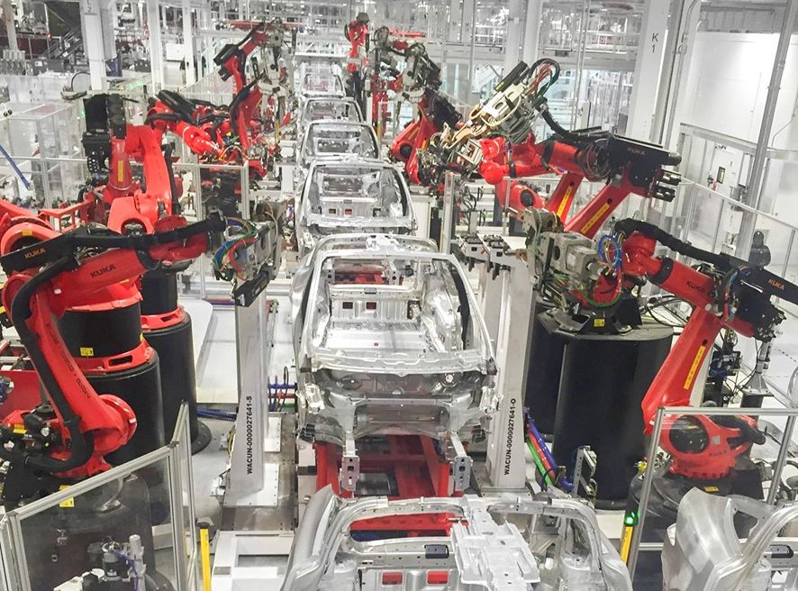 La empresa Tesla, que ha visto incrementar sus pedidos notablemente tras el anuncio de su nuevo modelo low-cost, tendrá que producir a mayor velocidad si quiere cumplir con los objetivos, si embargo aún sigue manteniendo una plantilla con humanos, que se encargan de la supervisión de los robots y del buen funcionamiento de las máquinas.