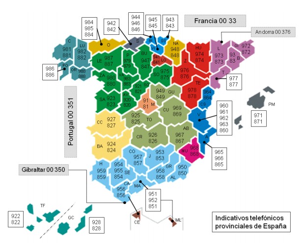 La adjudicación de números, así como los rangos atribuidos, se pueden consultar en una guía práctica de usuario publicada en la página web del Ministerio de Industria. El Plan Nacional de Numeración adjudica los números que comienzan por 6 y 7 a los móviles y los que empiezan por 8 y 9 a las provincias. La CNMC asigna bloques de 10.000 números telefónicos a cada operador dentro de cada provincia.