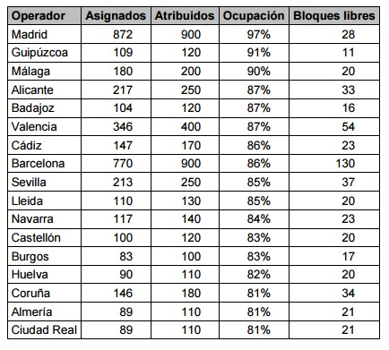 "Existe un riesgo a corto/medio plazo de agotamiento de los recursos de numeración geográfica en algunas provincias, especialmente Madrid por el ritmo de asignaciones y Guipúzcoa por los pocos bloques libres para su asignación", señala el informe.